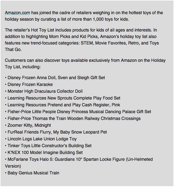 Baby Genius has recently launched exclusively on Amazon and has 46 separate product SKUs in the marketplace, ranging from plush dolls, to musical instruments, electronics, to sippy cups. Amazon recently announced their list of top holiday toys, and they included the Baby Genius Musical Train among their top picks of the holiday season.