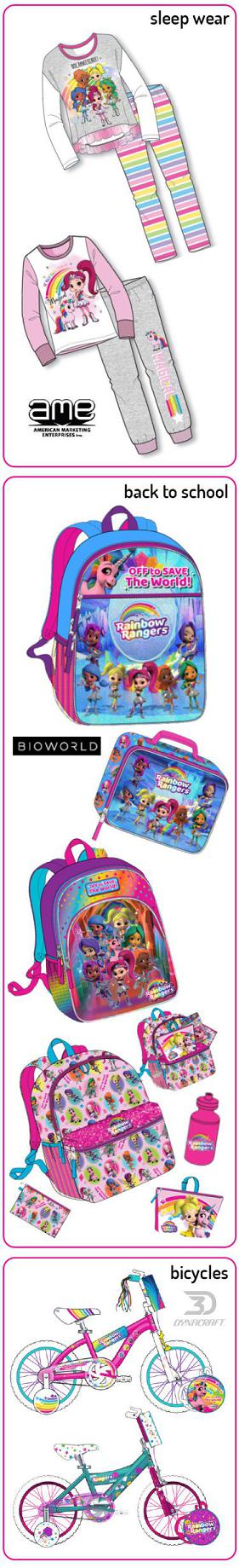 Rainbow Rangers today has over 300 consumer products coming to shelves and, in fact, one of them is a licensed vitamin. We also have toys and books and apparel, and bikes and costumes and bedding and footwear and even a toothpaste.